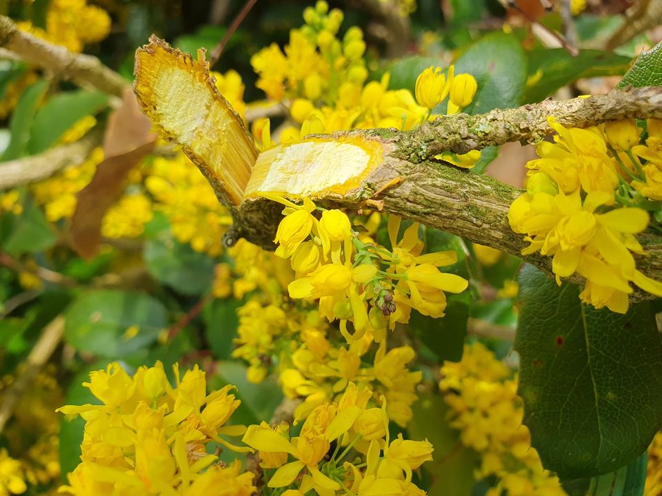 No matter the species of Barberry or Mahonia they all contain this bitter-tasting yellow-coloured chemical, that can strengthen the heartbeat, and moderate blood sugar balance with 100 or more therapeutic uses.