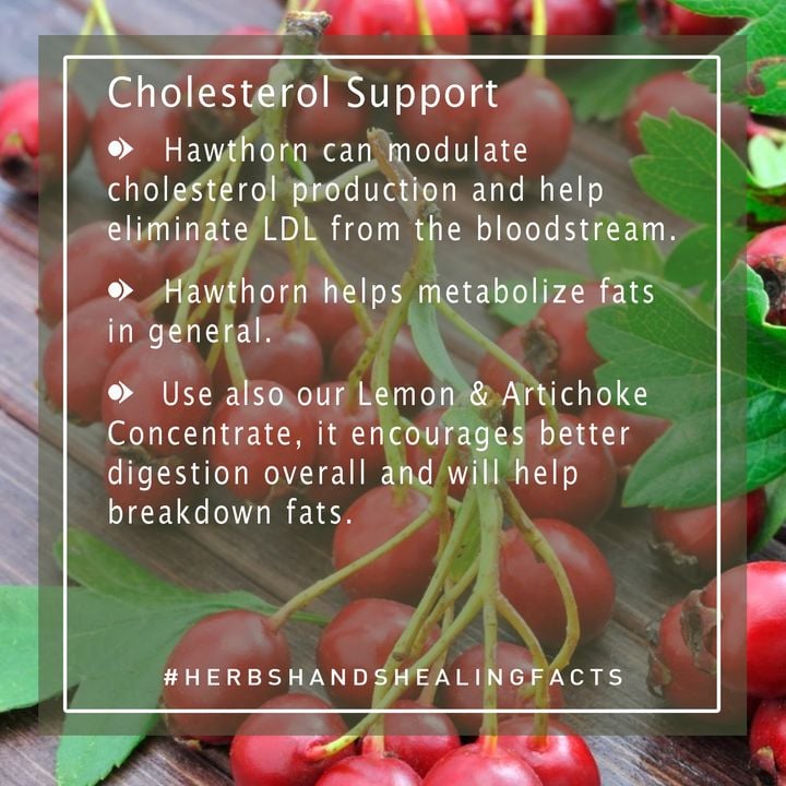 * Hawthorn can modulate cholesterol production and help eliminate LDL from the bloodstream.