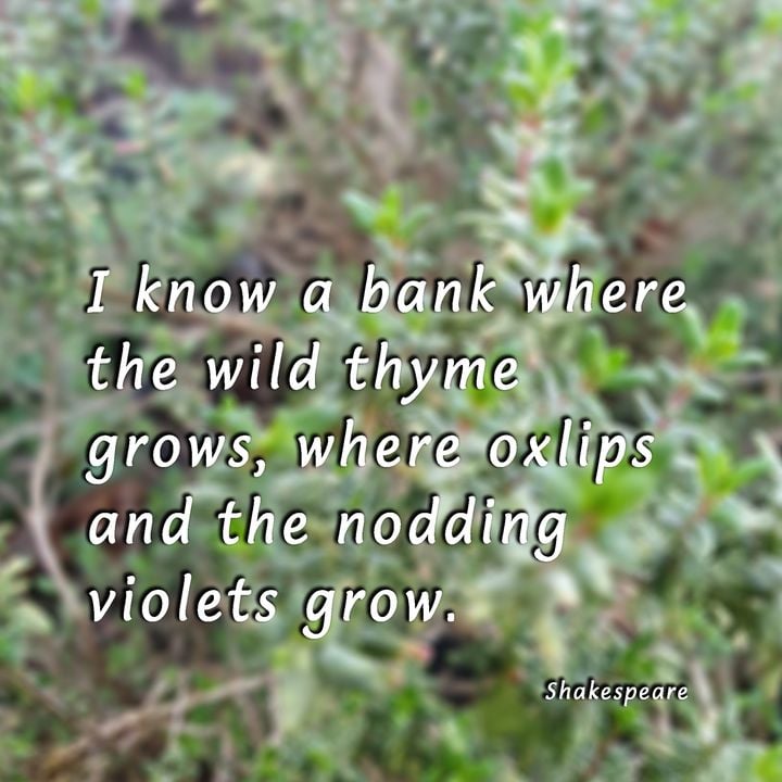 We’re used to garden thyme and its bushy upright abundant growth and easily picked leaves. Yet our native wild Thyme is no less fragrant and medicinal. Wild thyme has tiny leaves and a low-growing habit that can be found on Britain’s rocky and chalky hillsides and lowlands. Does any grow near you? Of course, it was this thyme that Shakespeare referred to in A Midsummer’s Night Dream.